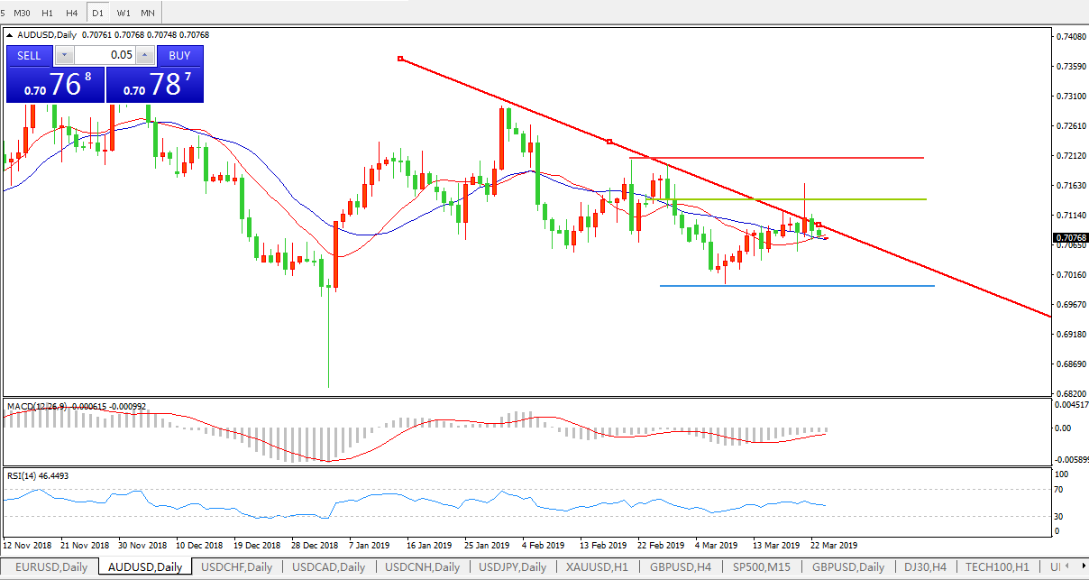 交易策略:在0.7140之下,看跌,目标价位为0.6990,然后为0.6940