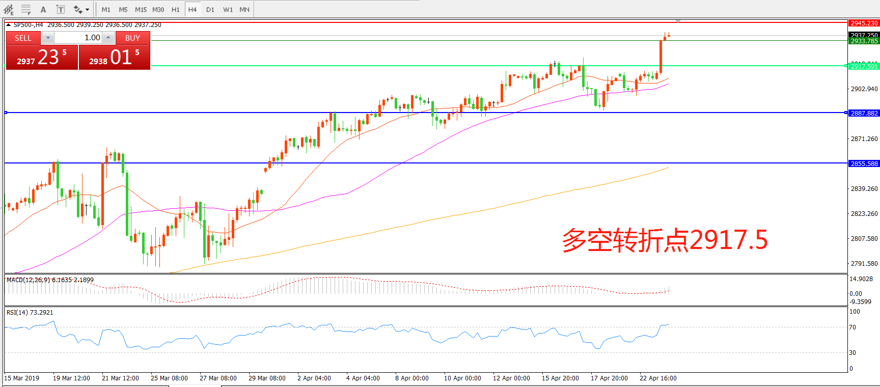 多空转折点:2917.00
