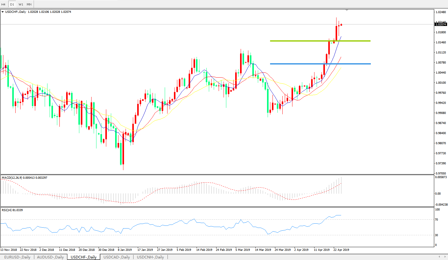 美元兑瑞郎USDCHF 日线图: