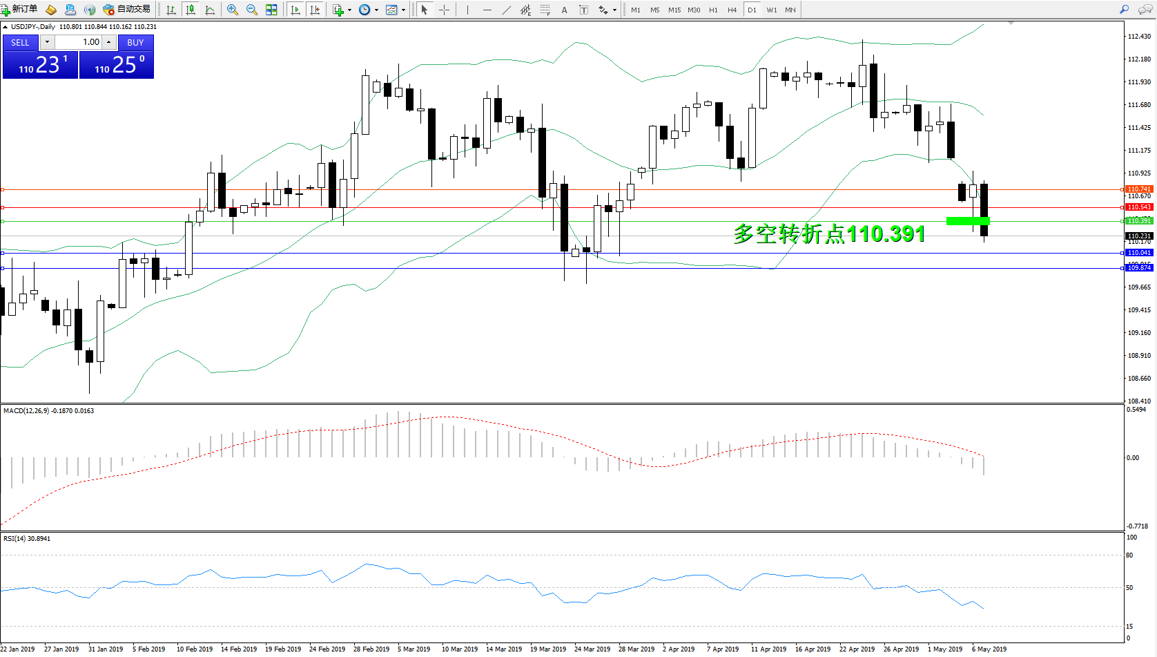 交易策略:110.391下方看跌,目标110.041109.874