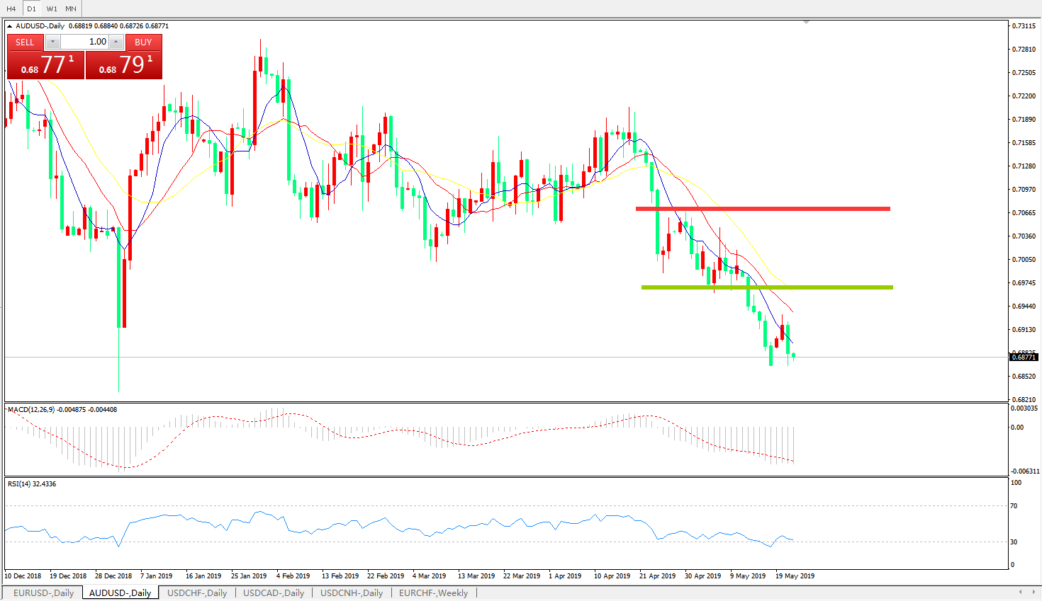 阻力位: 0.7068 0.7205