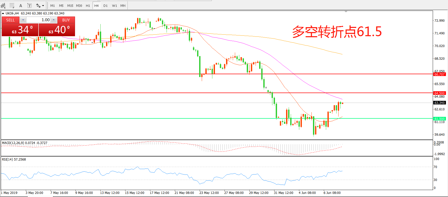 阻力位:64.50 66.70