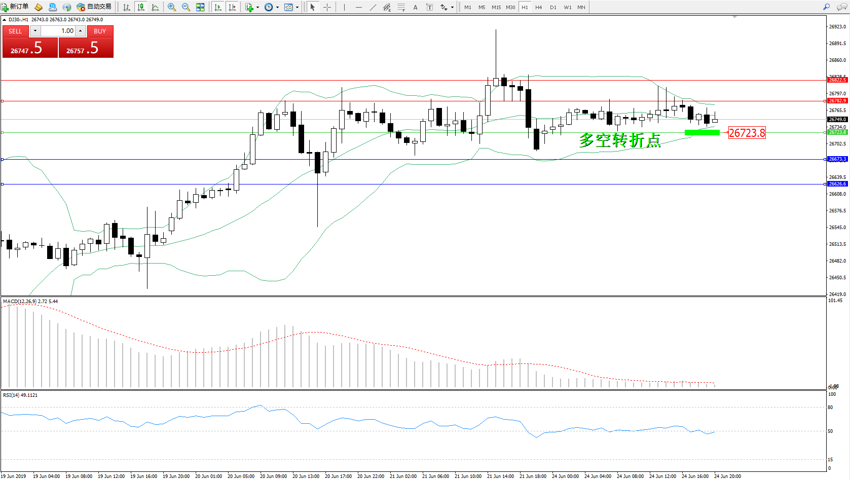 交易策略:26723上方看涨,目标26782、26822