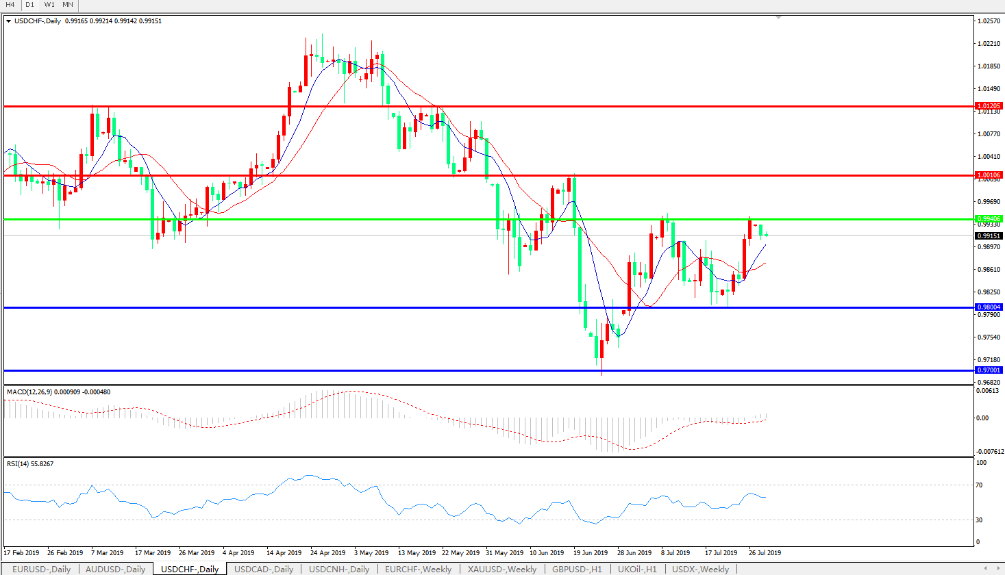 美元兑瑞郎USDCHF 日线图: