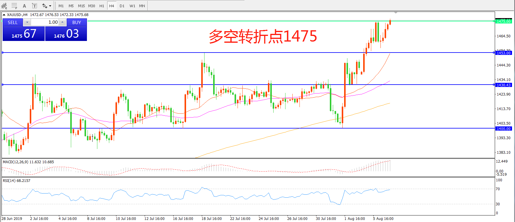 多空转折点:1475.00