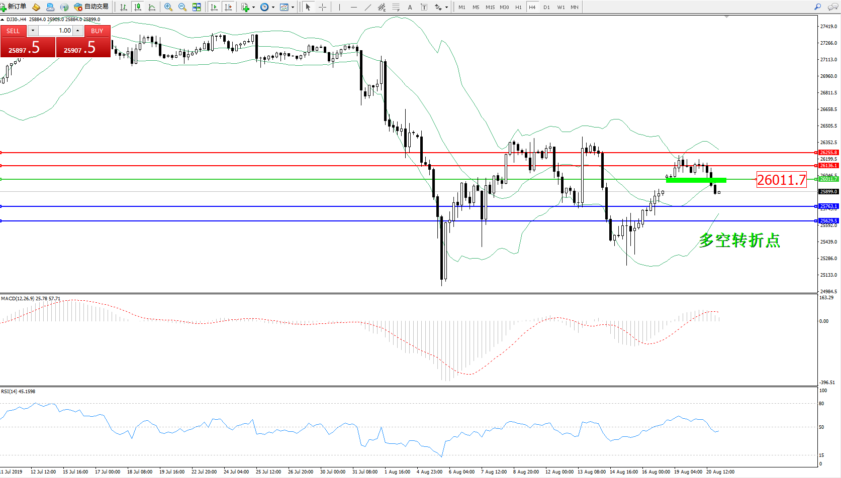 交易策略:26011下方看跌,目标25763、25629