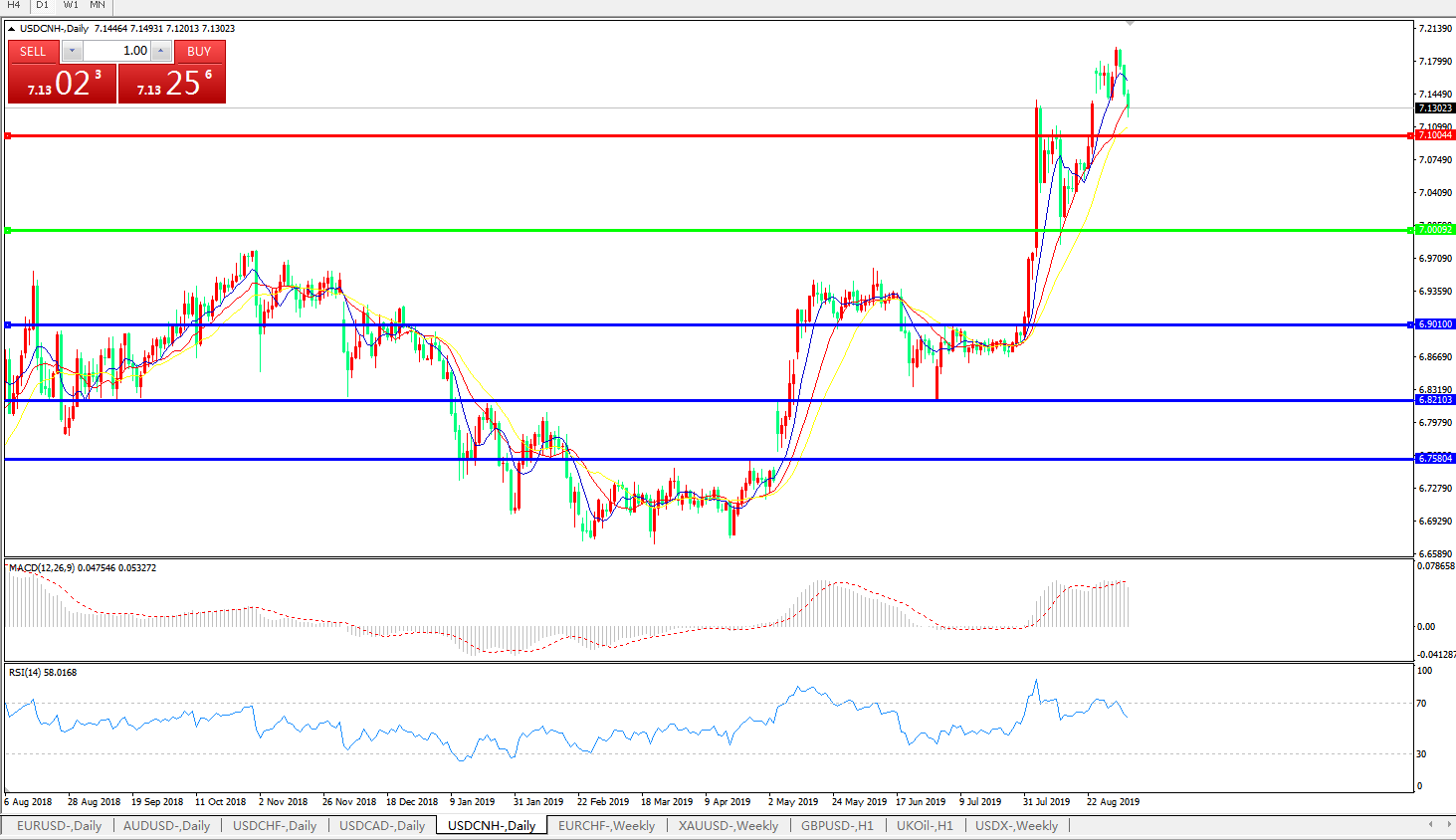 交易策略: 在7.0000之上,看涨,目标价位为7.1000,然后为7.2000。