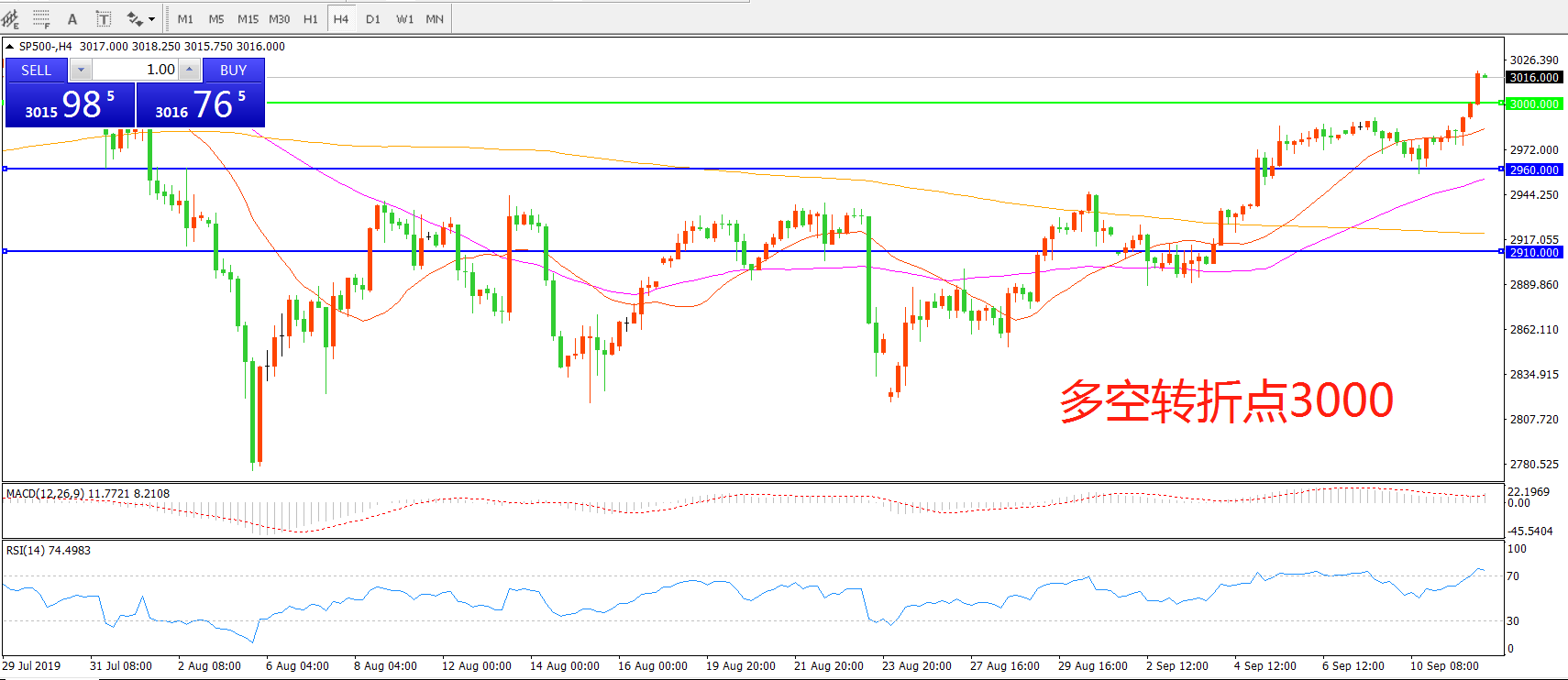 多空转折点:2960.00