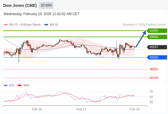 在 49300 之上,看涨,目标价位为 49900 ,然后为 50080 。