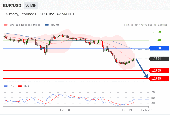 在 1.1820 之下,看跌,目标价位为 1.1765 ,然后为 1.1745 。