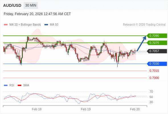 在 0.7030 之上,看涨,目标价位为 0.7075 ,然后为 0.7090 。