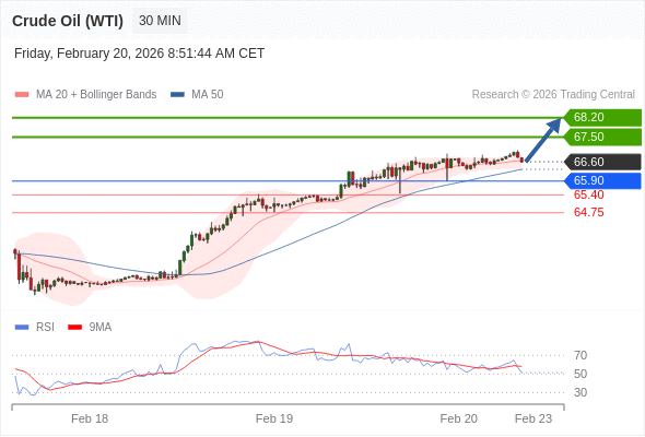 在 65.90 之上,看涨,目标价位为 67.50 ,然后为 68.20 。