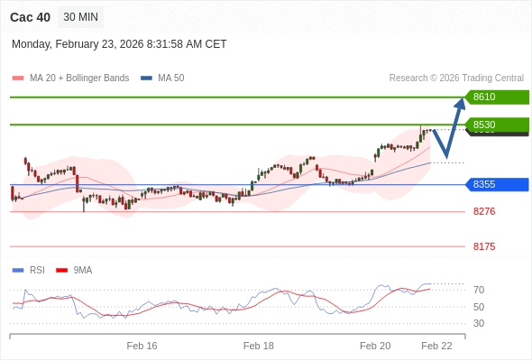 Cac 40 当日内: 期待8530。