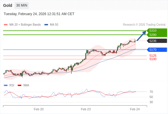 在 5170 之上,看涨,目标价位为 5280 ,然后为 5310 。