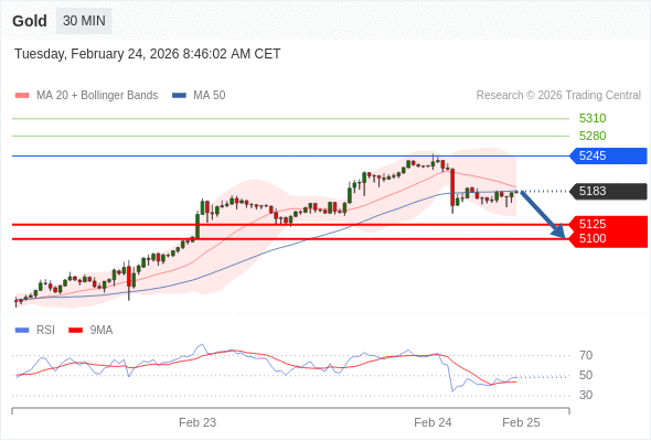 在 5245 之下,看跌,目标价位为 5125 ,然后为 5100 。
