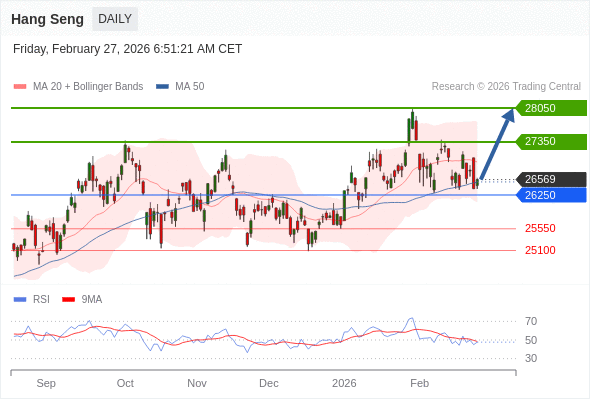 交易策略: 在 26250 之上,看涨,目标价位为 27350 ,然后为 28050 。