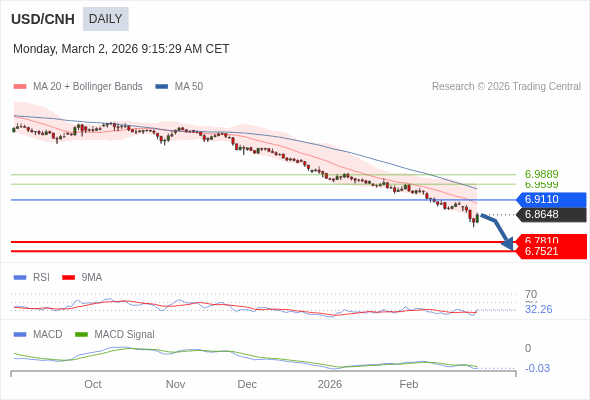 交易策略: 看跌,在 6.9110 之下。