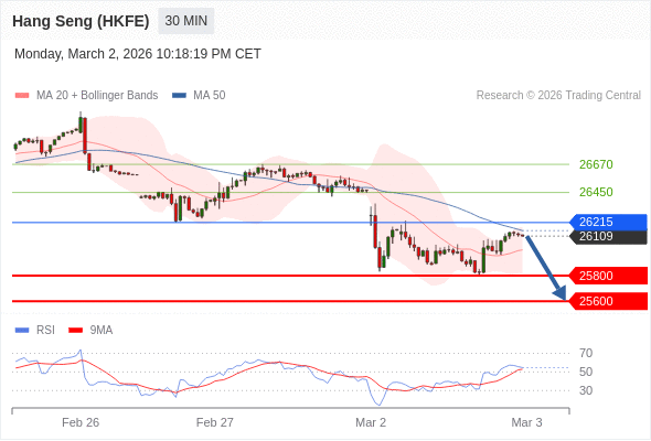 在 26215 之下,看跌,目标价位为 25800 ,然后为 25600 。
