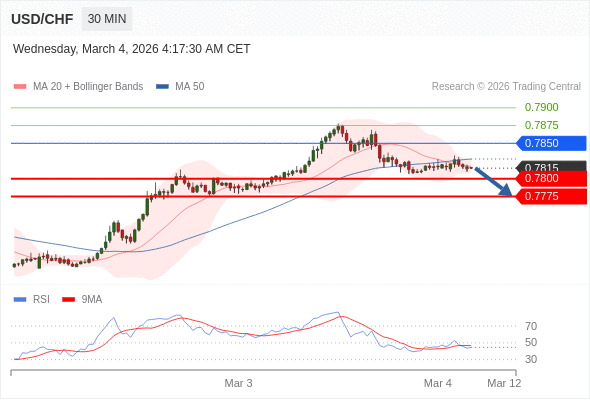 在 0.7850 之下,看跌,目标价位为 0.7800 ,然后为 0.7775 。