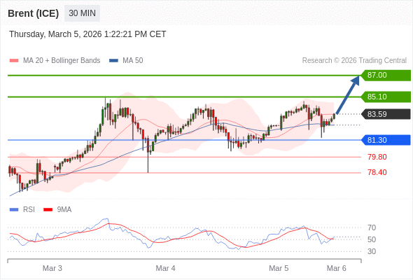 在 81.30 之上,看涨,目标价位为 85.10 ,然后为 87.00 。