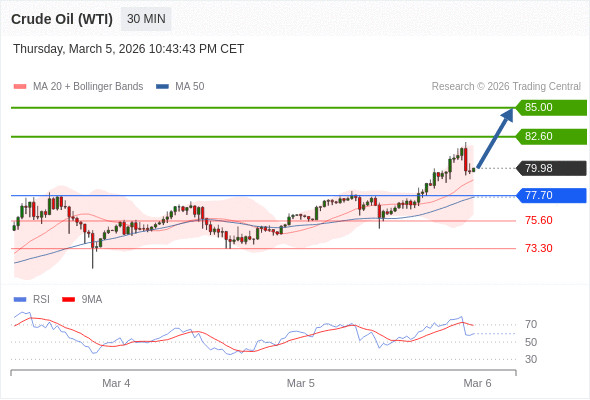 交易策略: 在 77.70 之上,看涨,目标价位为 82.60 ,然后为 85.00 。