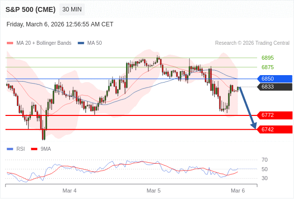 在 6850 之下,看跌,目标价位为 6772 ,然后为 6742 。