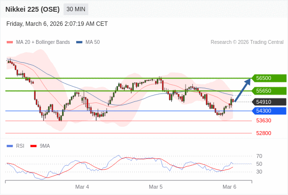 交易策略: 在 54300 之上,看涨,目标价位为 55650 ,然后为 56500 。