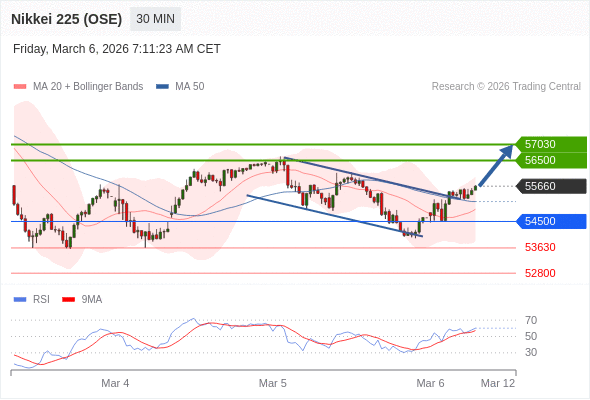 在 54500 之上,看涨,目标价位为 56500 ,然后为 57030 。