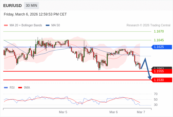在 1.1625 之下,看跌,目标价位为 1.1555 ,然后为 1.1530 。