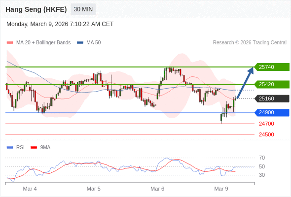 香港恒生指数期货 当日内: 期待25740。