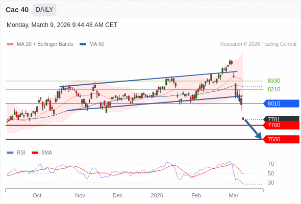 在 8010 之下,看跌,目标价位为 7700 ,然后为 7500 。