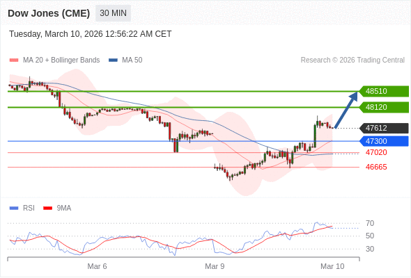 在 47300 之上,看涨,目标价位为 48120 ,然后为 48510 。