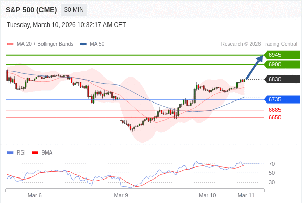 在 6735 之上,看涨,目标价位为 6900 ,然后为 6945 。