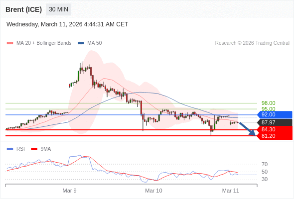 交易策略: 在 92.00 之下,看跌,目标价位为 84.30 ,然后为 81.20 。