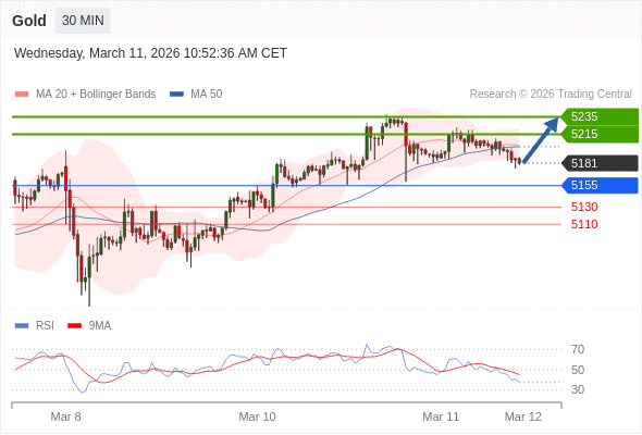 在 5155 之上,看涨,目标价位为 5215 ,然后为 5235 。