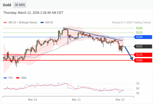 在 5195 之下,看跌,目标价位为 5115 ,然后为 5090 。