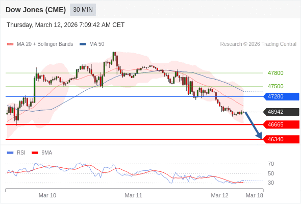 在 47280 之下,看跌,目标价位为 46665 ,然后为 46340 。