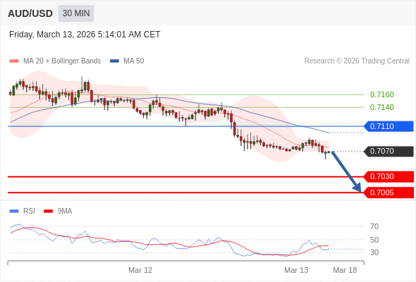 在 0.7110 之下,看跌,目标价位为 0.7030 ,然后为 0.7005 。