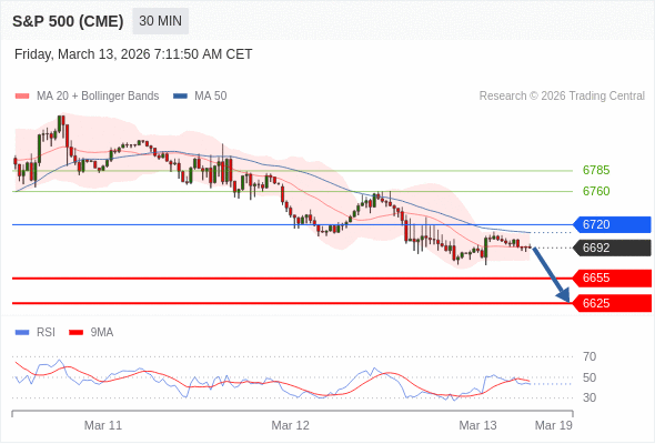 在 6720 之下,看跌,目标价位为 6655 ,然后为 6625 。