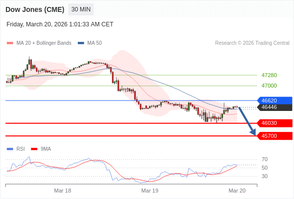 在 46620 之下,看跌,目标价位为 46030 ,然后为 45700 。