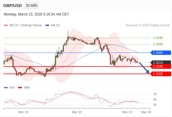 在 1.3360 之下,看跌,目标价位为 1.3295 ,然后为 1.3260 。