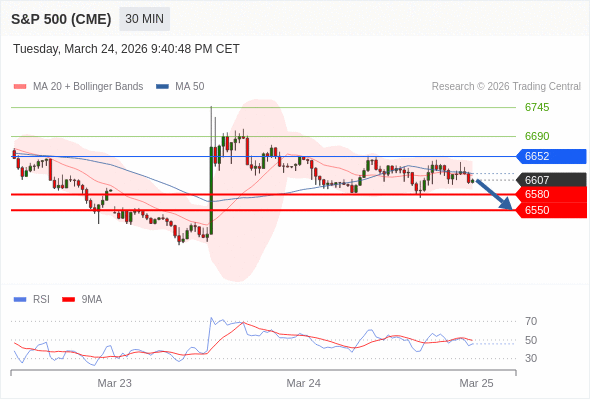 在 6652 之下,看跌,目标价位为 6580 ,然后为 6550 。