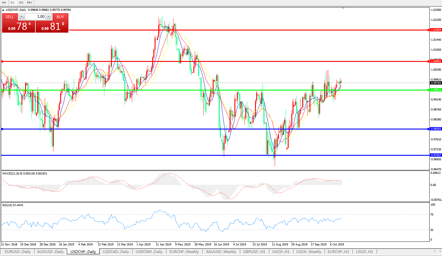 美元兑瑞郎USDCHF 日线图: