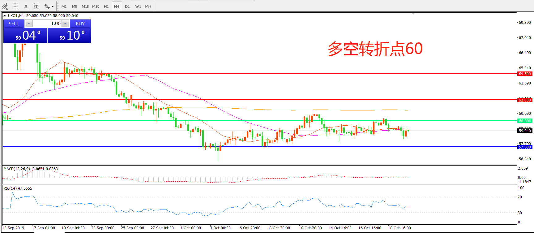 交易策略:在60.00之下看跌,目标57.50    55.00
