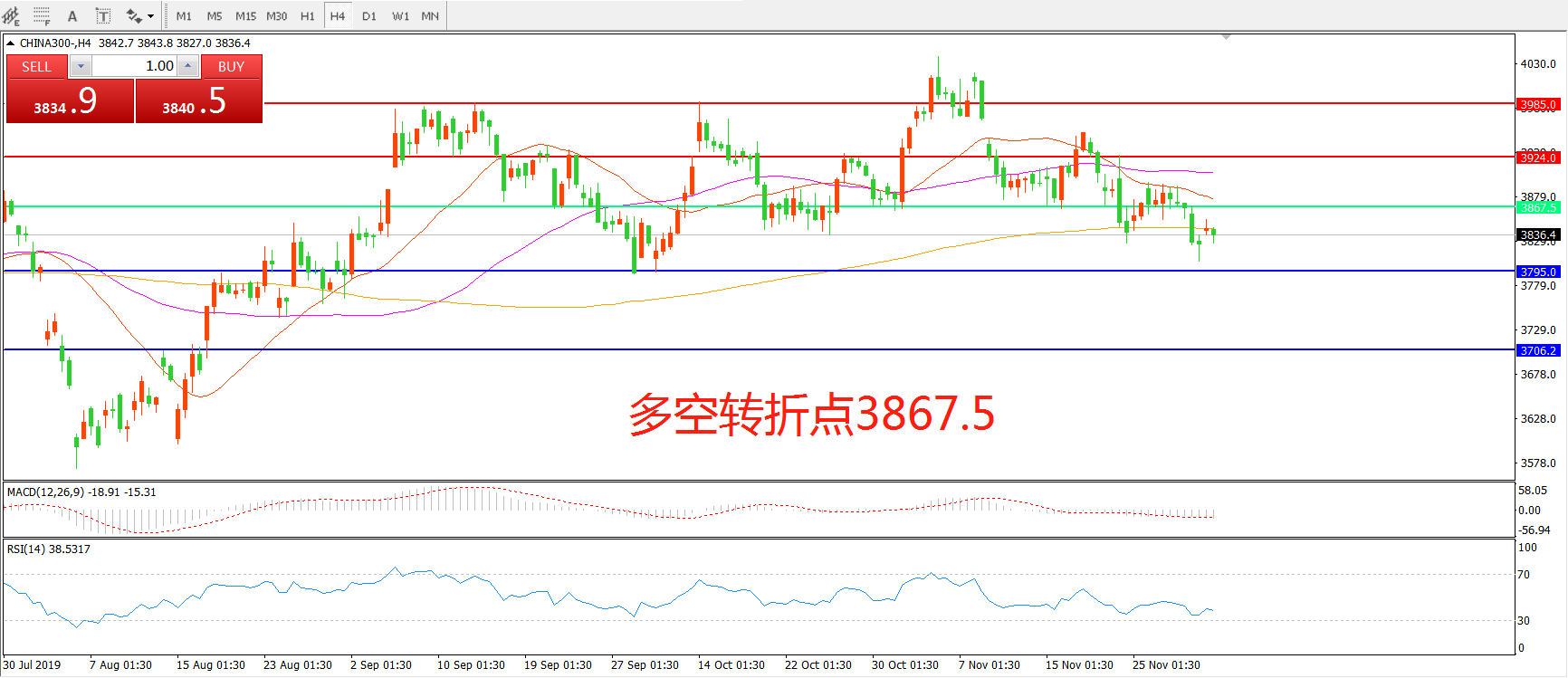 交易策略:在3867.50之下看跌,目标3795.00     3706.00