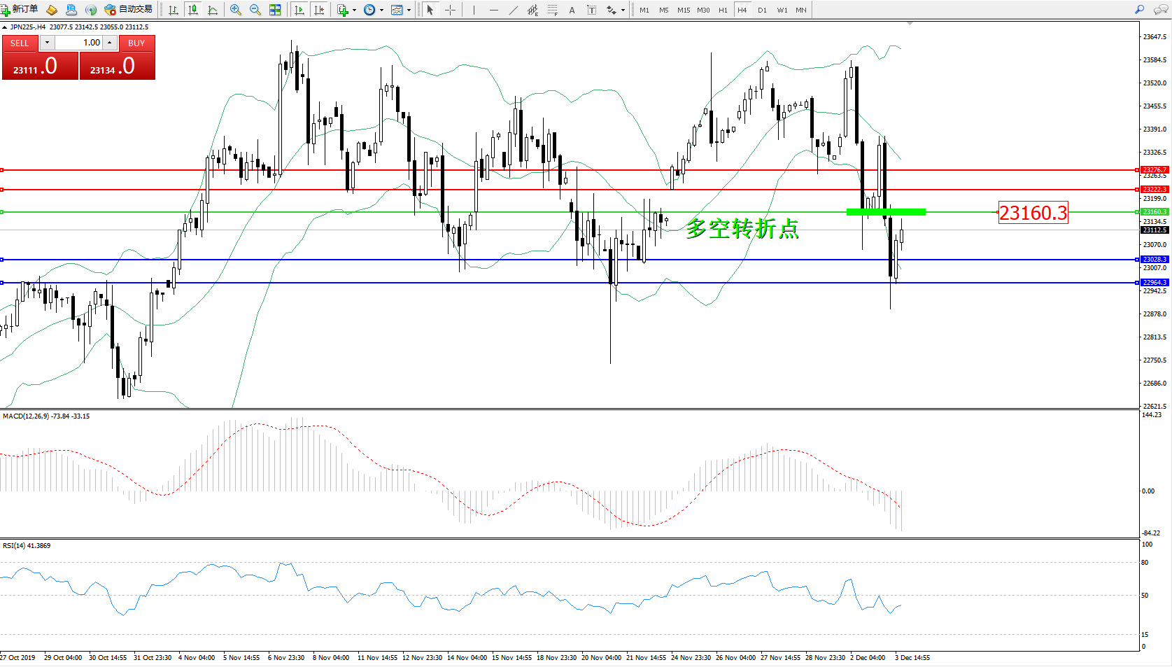 日经225指数12月3日(周二)收盘下跌168.50点,跌幅0.72%,报23361.00点。日本央行将在1月份的会议上下调负利率,并将收益率目标的期限从10年期缩短至5年期,现调整为在2022年3月底之前都按兵不动。Tetsufumi Yamakawa和Kazuma Maeda等经济学家认为,明年第一季度经济下行风险仍存,政策进一步宽松的可能性仍不能排除。日本经济政策的重点将由宽松的货币政策转向大规模额外预算的财政扩张。日本央行在10月份仅调整了前瞻指引,此后市场对进一步宽松的预期已大幅减弱。