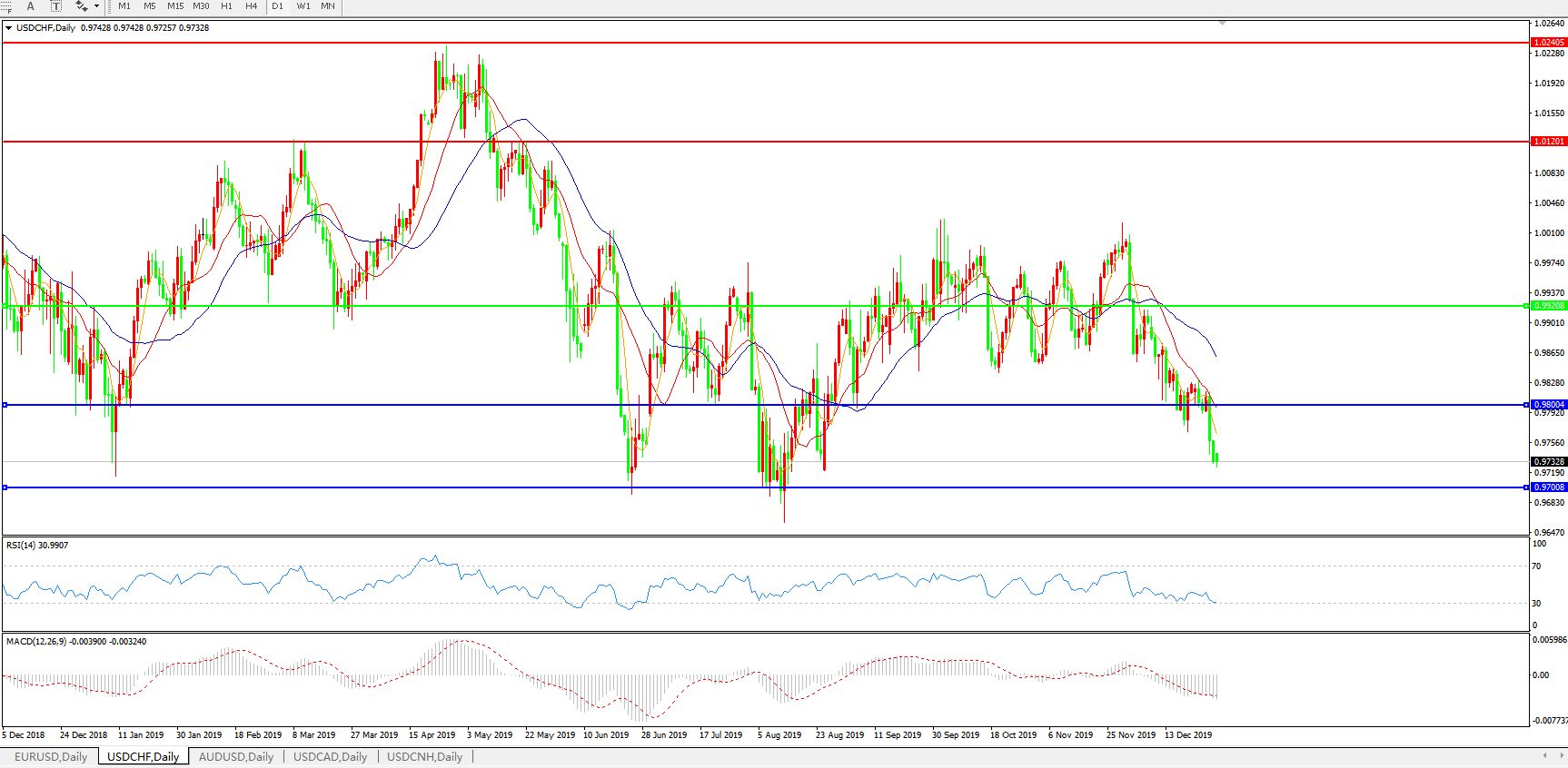 美元兑瑞郎USDCHF 日线图: