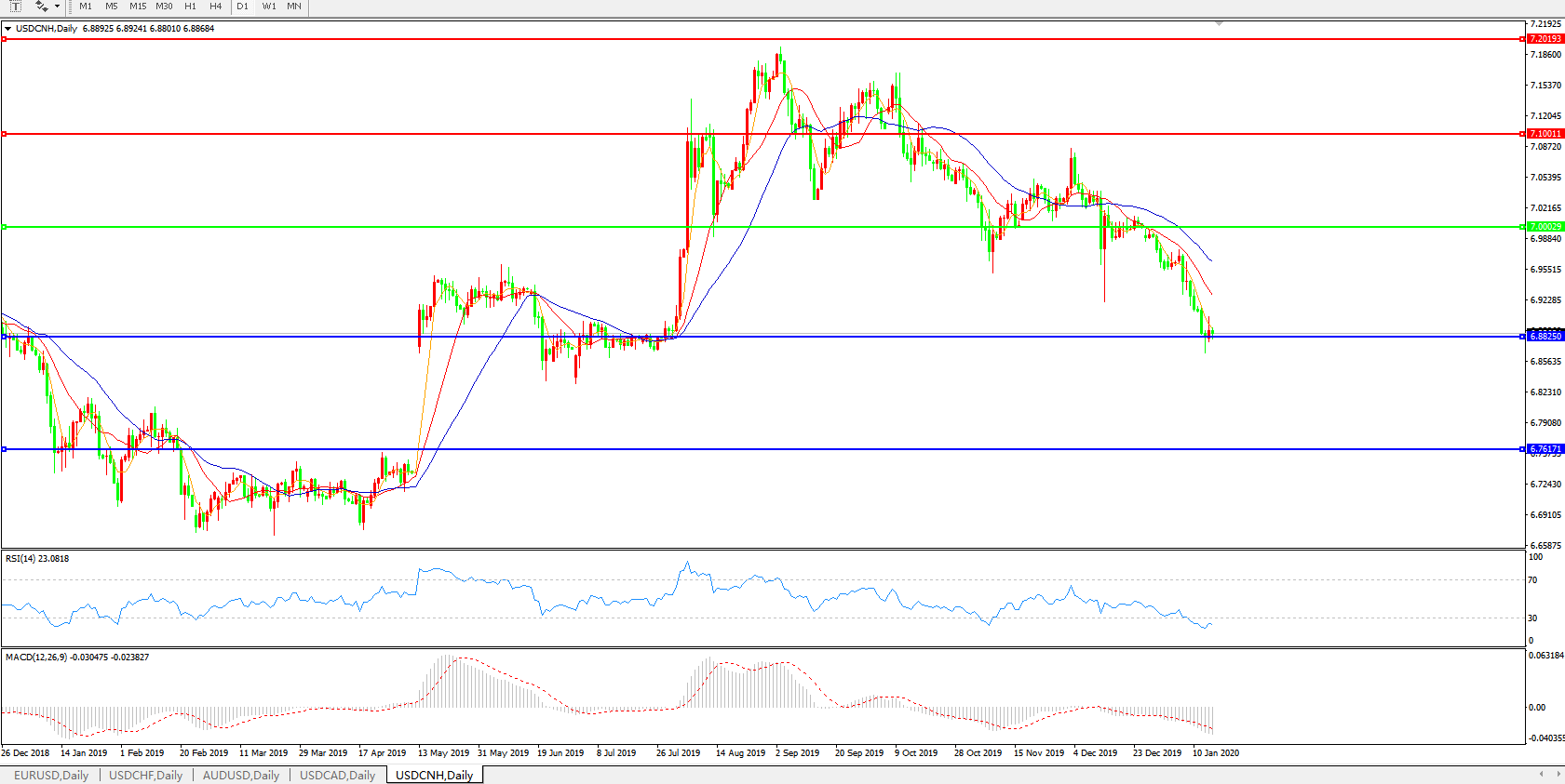 美元兑人民币USDCNH    日线图: