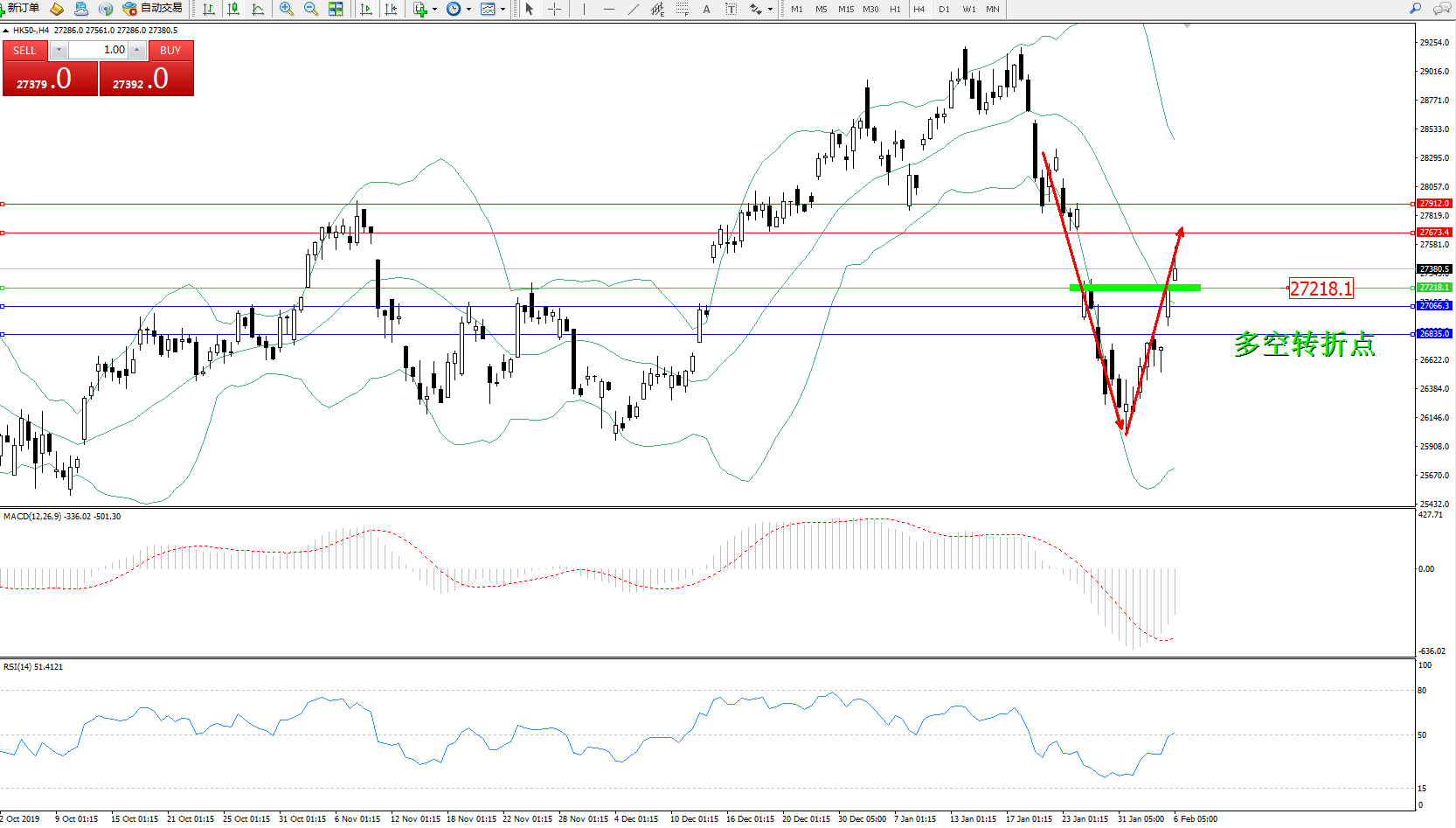香港恒生指数26日(周四)收盘上涨706.96点,涨幅2.64%,报27493.70点;航空股、石油股集体爆发 东航、南航皆大涨超7%,截至今日收盘,恒指大市成交额报1317.26亿港元(上一交易日成交额为1337.8亿港元)。午间国务院关税税则委员会决定,对原产于美国约750亿美元进口商品的加征关税减半。肺炎药物进展提振情绪,加之中美贸易持续缓和。市场应声上涨,南下资金持续涌入,推升主要股指大幅反弹上涨。随着疫情得到有效抑制,同时有托底政策持续加码,再叠加外资、银行理财、保险养老金等中长期资金持续流入,市场将很快重新进入上行轨道。