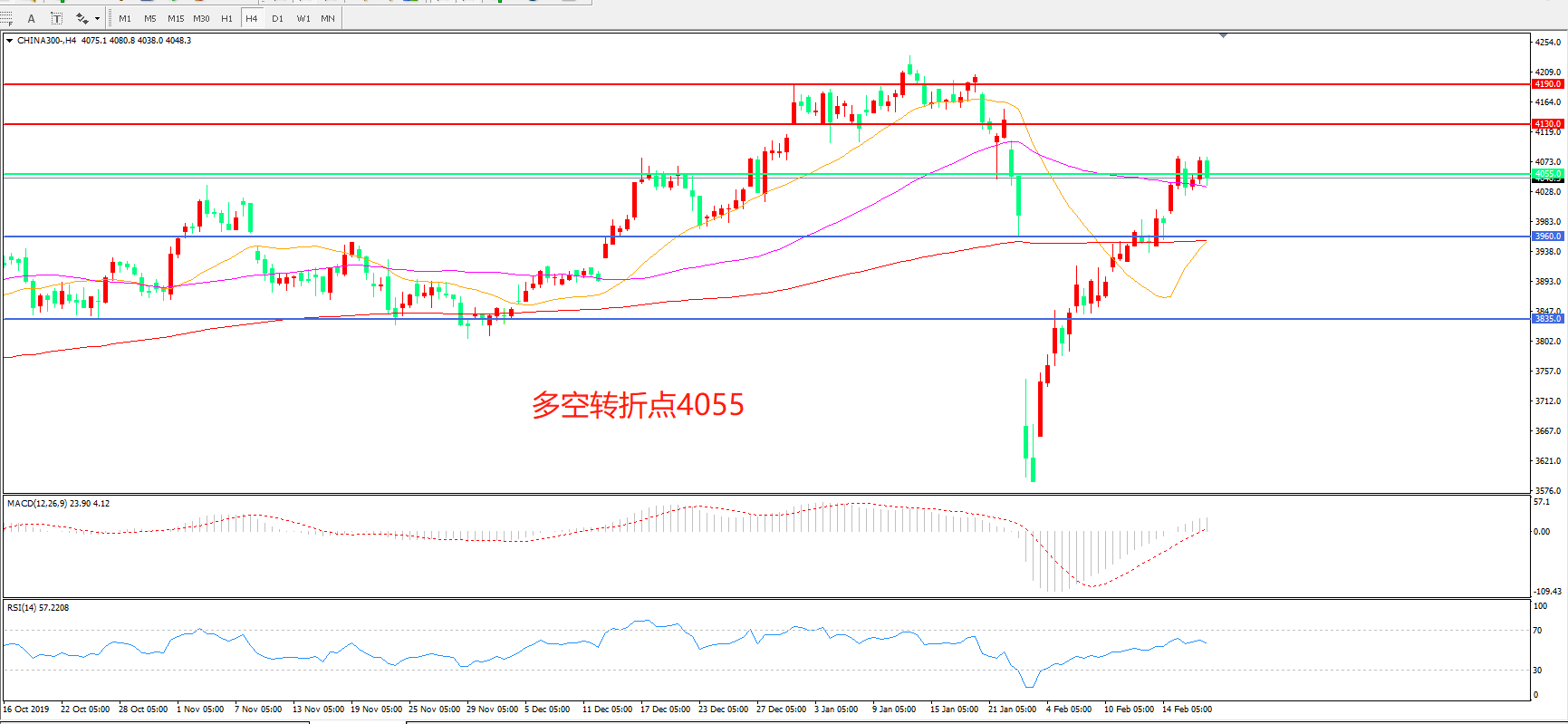 多空转折点:4055.00